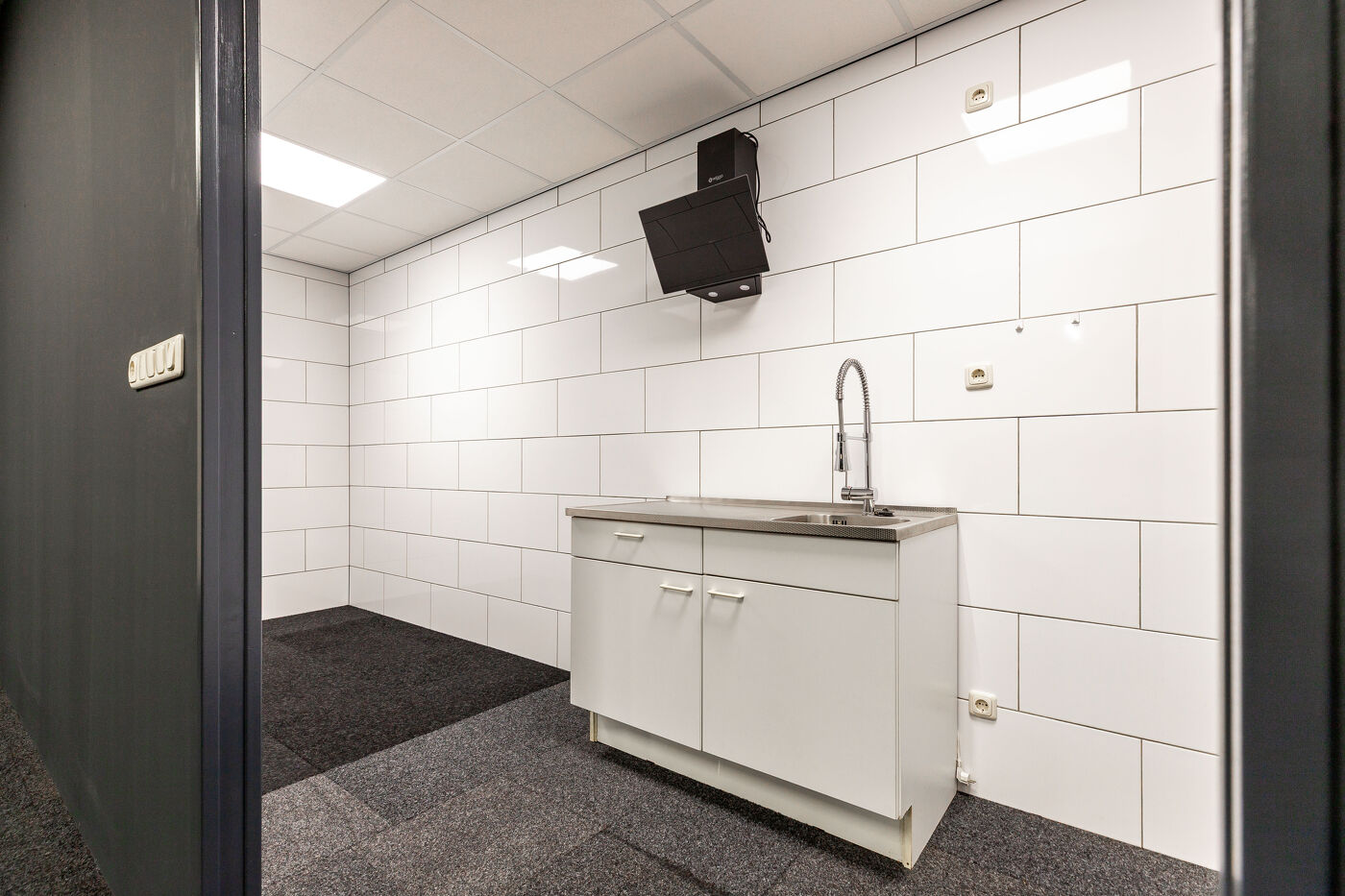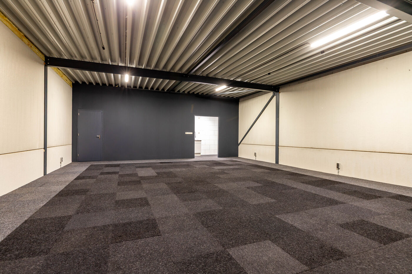 De bedrijfsruimte op de begane grond heeft een oppervlakte van circa 116 m² en een vrije hoogte tot de verdiepingsvloer van ruim 4 meter. Het voorste gedeelte (eerste 2,4 meter) heeft zelfs een vrije hoogte van 7,35 meter, waardoor het mogelijk is om goederen met een heftruck naar de verdieping te verplaatsen. De ruimte is voorzien van een elektrische overheaddeur en beschikt over een uitstortgootsteen. Verspreid door de bedrijfsruimte zijn voldoende stopcontacten aanwezig en de verlichting is uitgevoerd in energiezuinige LED-armaturen.
