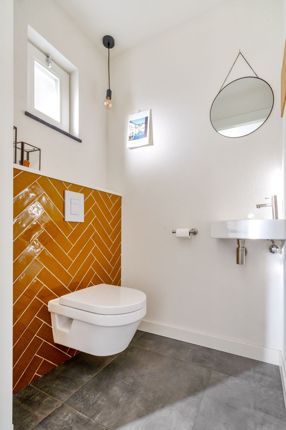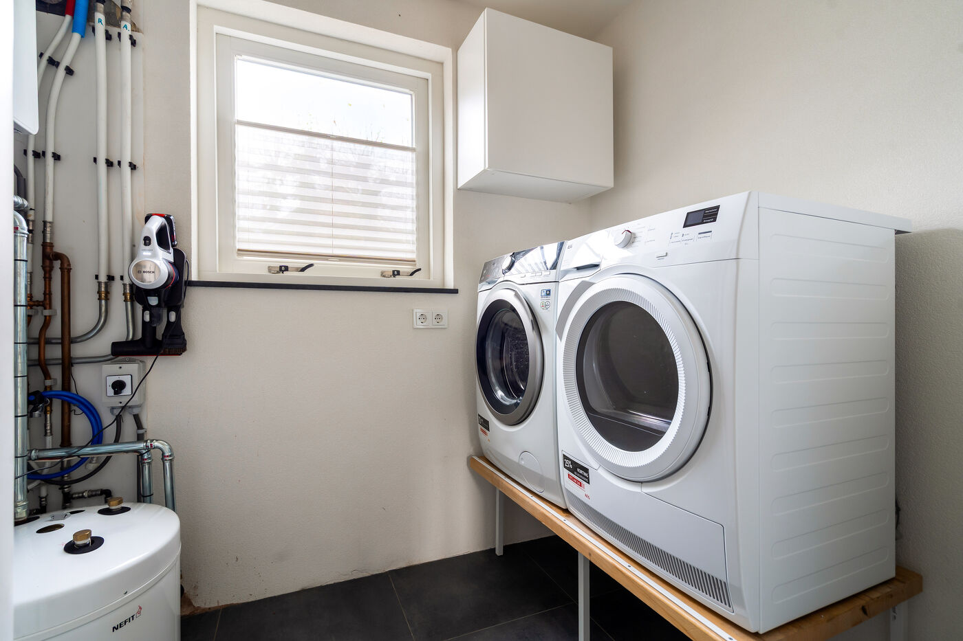 Naast de keuken bevindt zich een portaal met toegang tot de cv-/wasruimte, het toilet en de achterdeur naar de tuin.