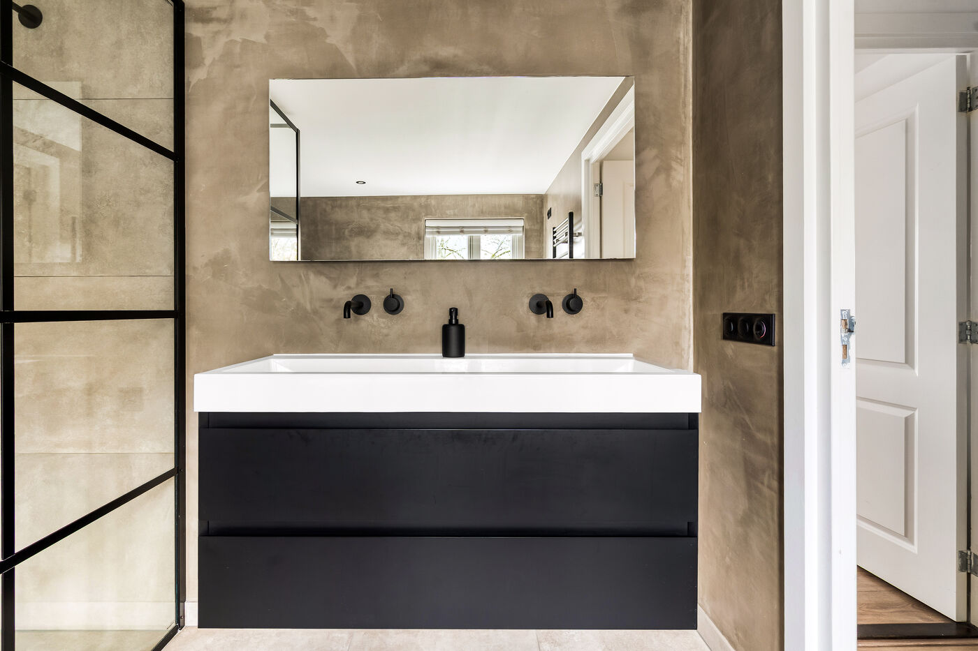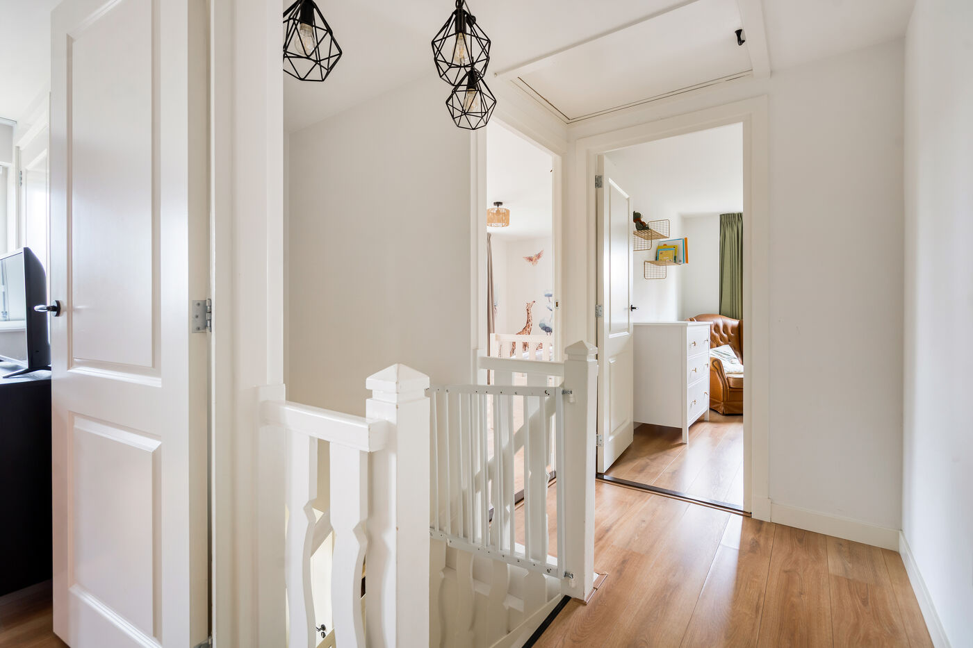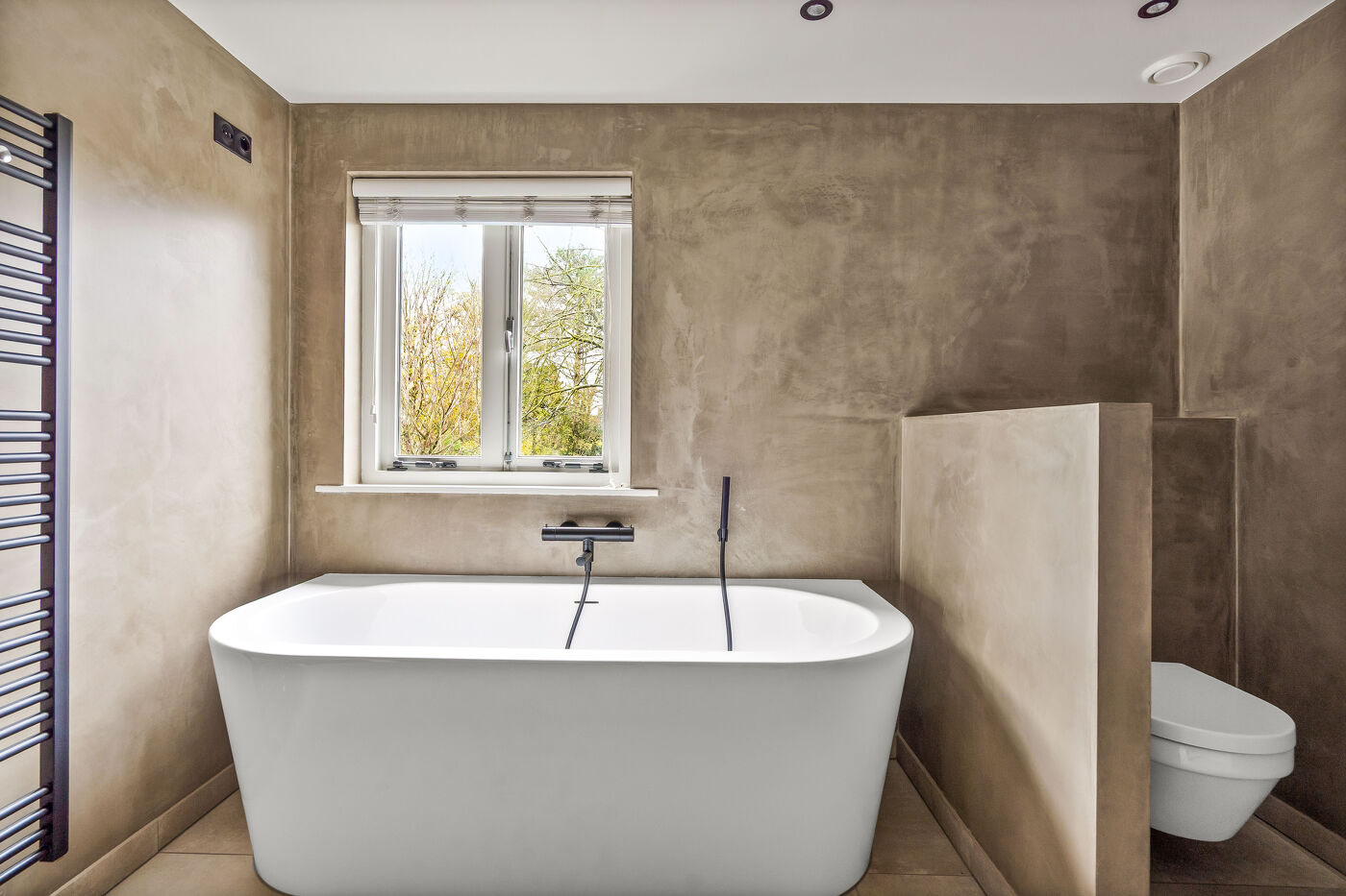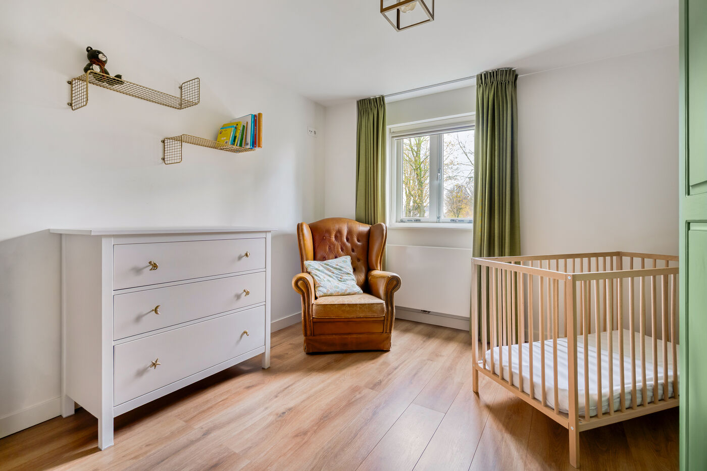 Boven: De overloop geeft toegang tot drie ruime slaapkamers en een vierde, kleinere kamer die momenteel in gebruik is als inloopkast, maar ook prima als slaapkamer kan dienen. Deze indeling biedt diverse mogelijkheden voor gezinnen, thuiswerkers of logees. De moderne badkamer uit 2018 is stijlvol afgewerkt in rustige, natuurlijke tinten en uitgerust met een royale inloopdouche met glazen wand, een modern ligbad, een wastafel met meubel, een toilet en een designradiator. Via een vlizotrap bereik je de ruime bergzolder.