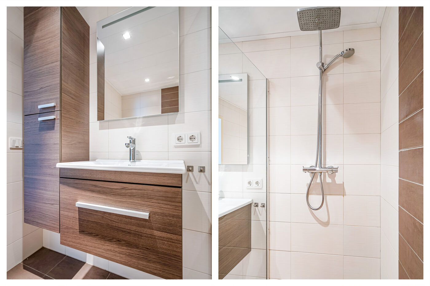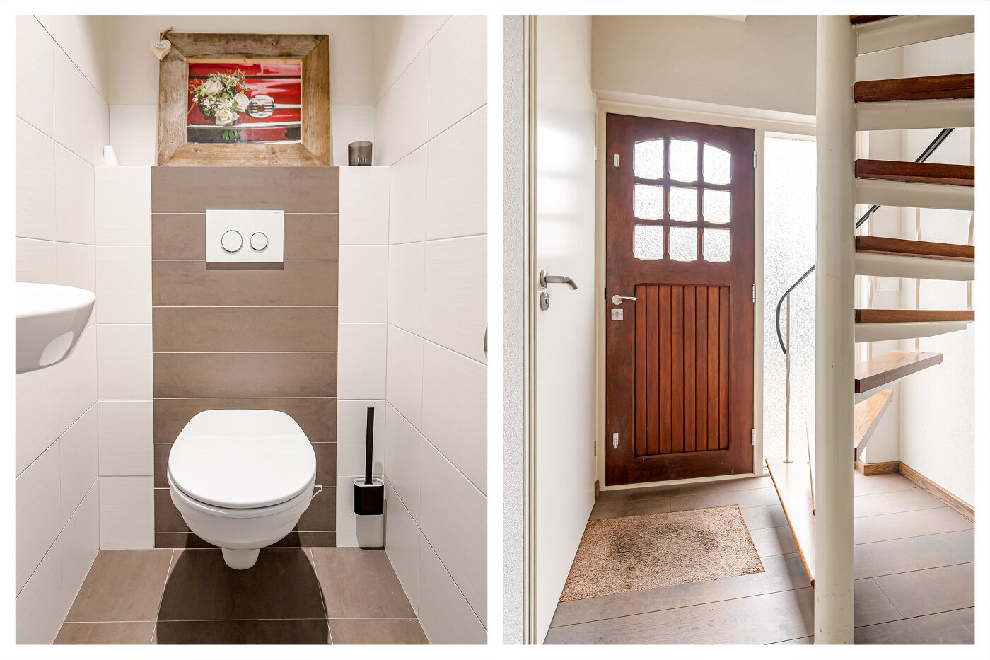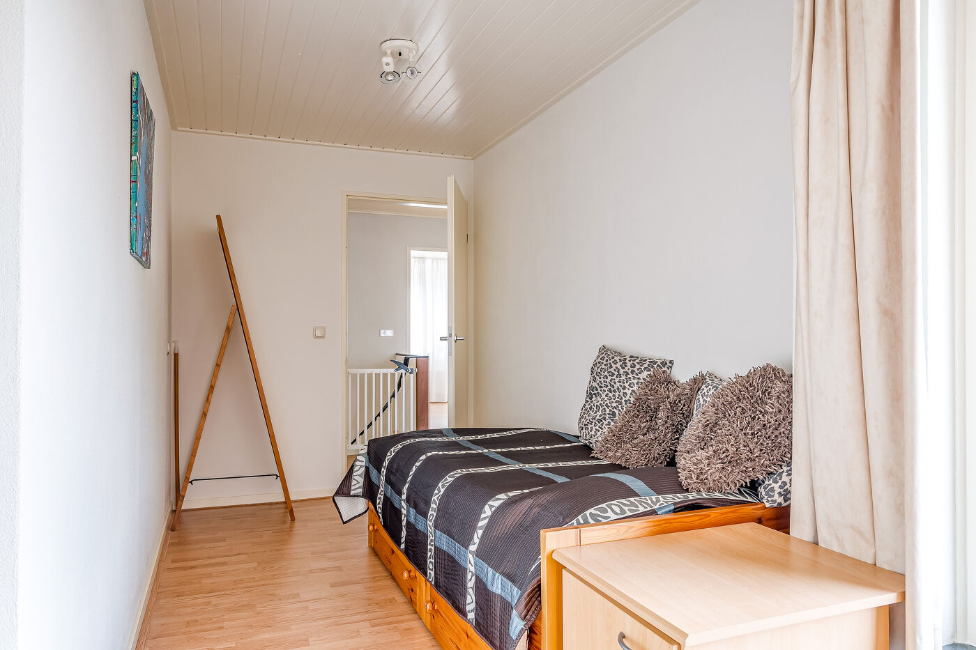 Eerste verdieping: Op de eerste verdieping bevinden zich drie ruime slaapkamers, elk met een prettige lichtinval en een nette laminaatvloer. De luxe, geheel betegelde badkamer is uitgerust met een inloopdouche, ligbad, wastafelmeubel, designradiator, ingebouwde radio en elektrische vloerverwarming. Vanaf de overloop is tevens een separaat tweede toilet bereikbaar. Bijna alle kozijnen en ramen op deze verdieping zijn vernieuwd en voorzien van rolluiken, wat zorgt voor extra privacy en een aangenaam binnenklimaat.