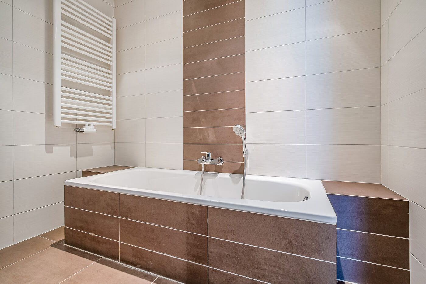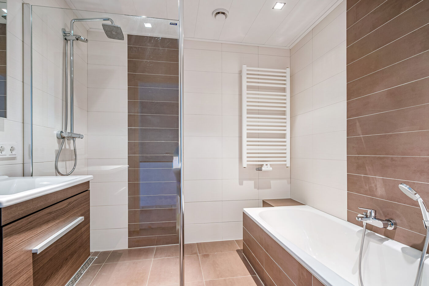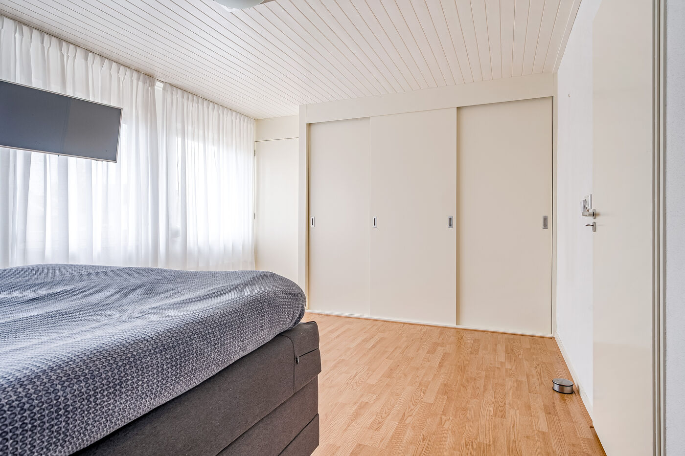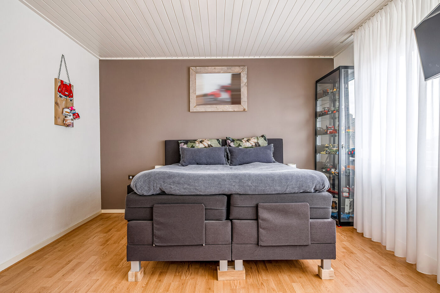Eerste verdieping: Op de eerste verdieping bevinden zich drie ruime slaapkamers, elk met een prettige lichtinval en een nette laminaatvloer. De luxe, geheel betegelde badkamer is uitgerust met een inloopdouche, ligbad, wastafelmeubel, designradiator, ingebouwde radio en elektrische vloerverwarming. Vanaf de overloop is tevens een separaat tweede toilet bereikbaar. Bijna alle kozijnen en ramen op deze verdieping zijn vernieuwd en voorzien van rolluiken, wat zorgt voor extra privacy en een aangenaam binnenklimaat.