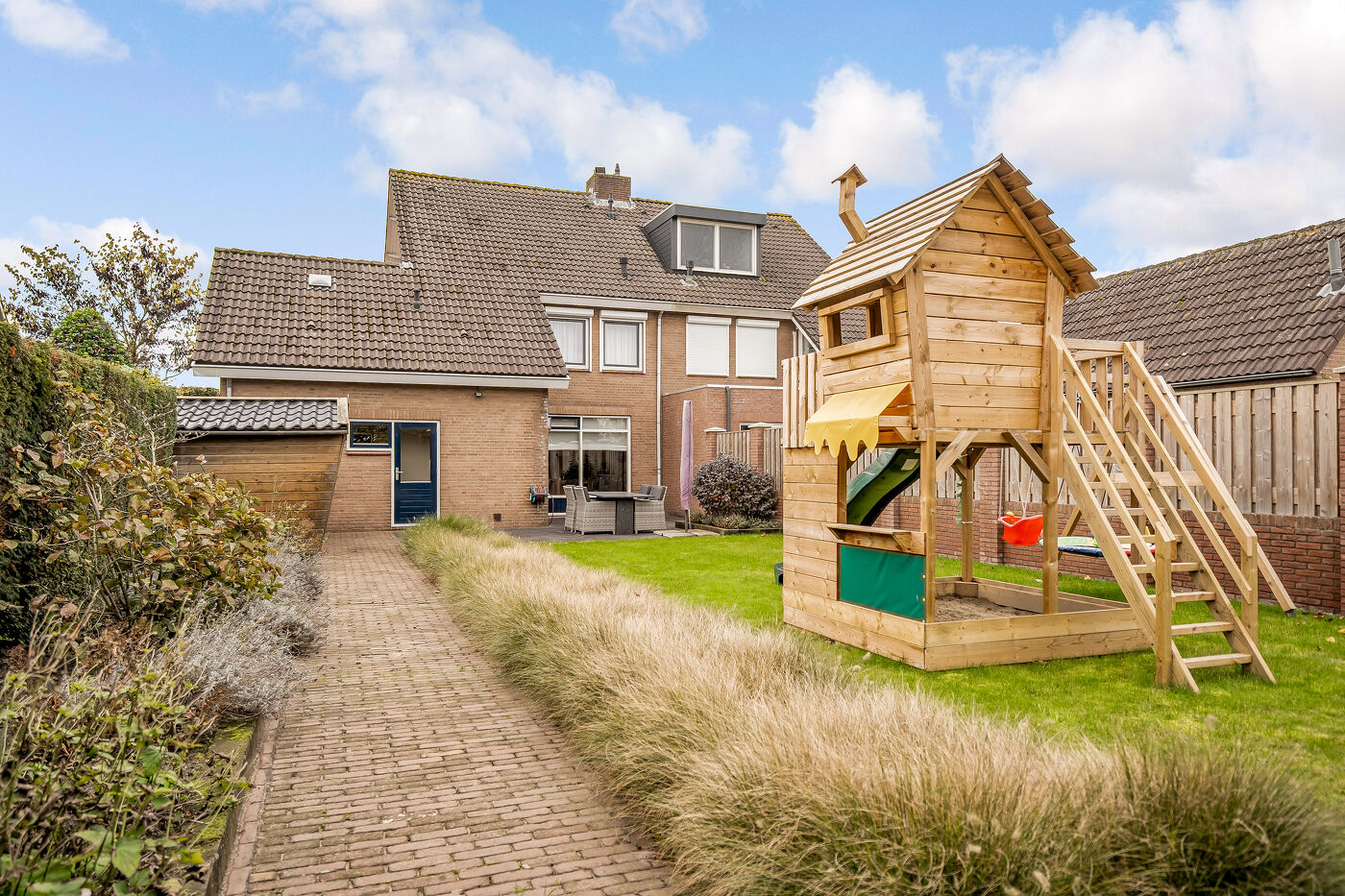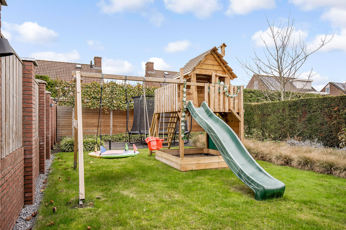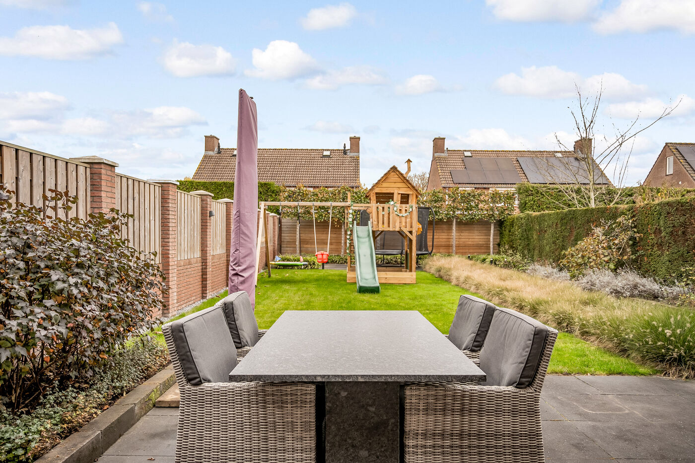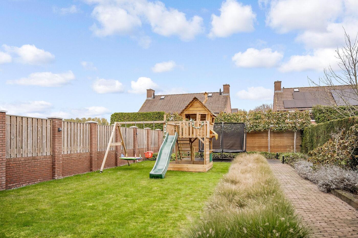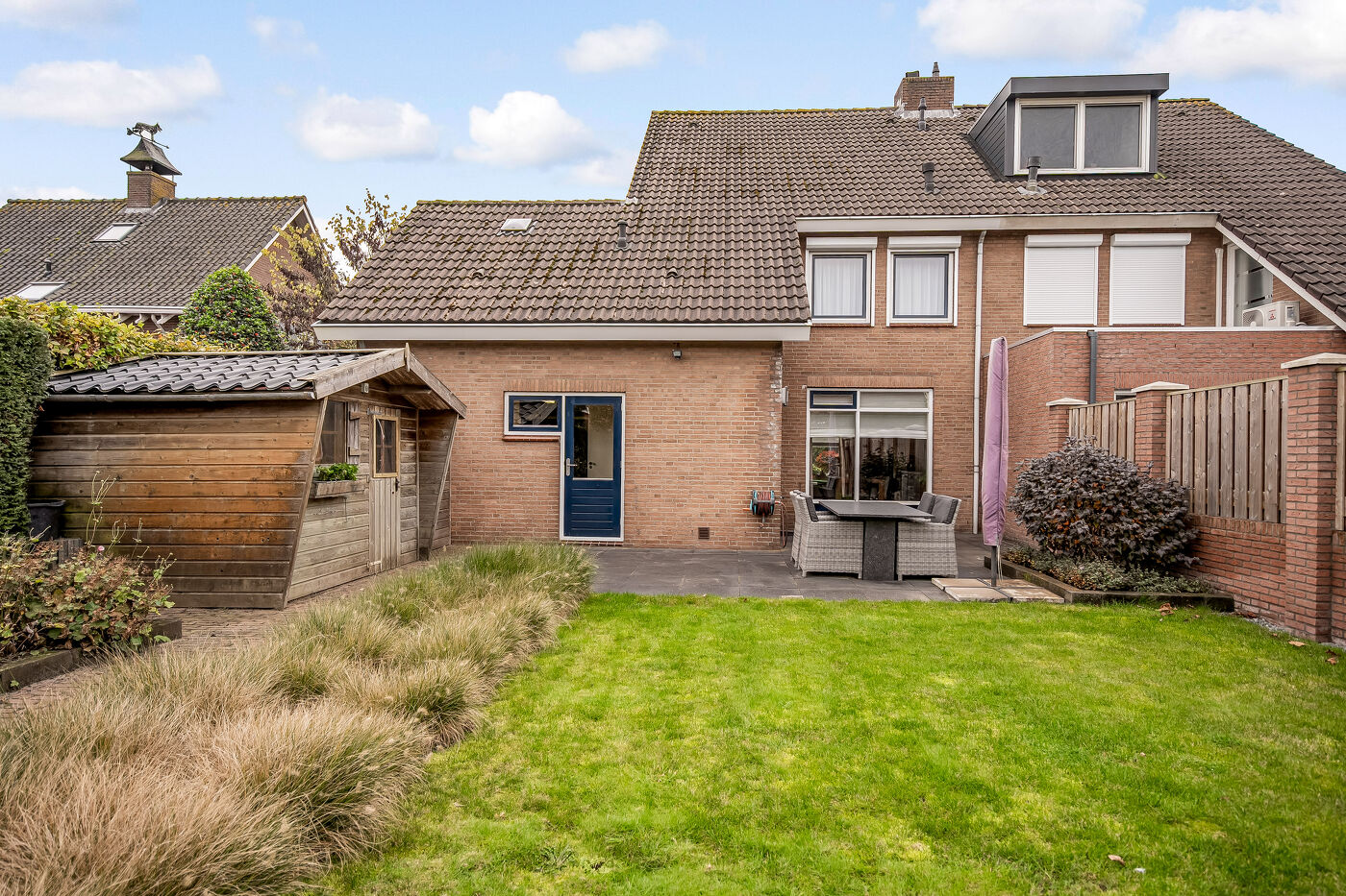 Tuin: De tuin is één van de absolute pluspunten van deze woning. De diepe achtertuin biedt veel privacy, ruimte en groen. Dankzij de royale afmetingen is er plaats voor meerdere terrassen en ruime speelmogelijkheden voor kinderen. Direct aan de woning bevindt zich een groot terras met aansluitend een uitgestrekt gazon en diverse beplanting. De tuin is volledig omsloten met schuttingen en hagen en beschikt over een praktische tuinberging voor onder andere tuingereedschap. De voortuin en oprit maken het geheel compleet: er is voldoende ruimte om meerdere auto’s te parkeren, en in de garage is plaats voor één auto binnen.