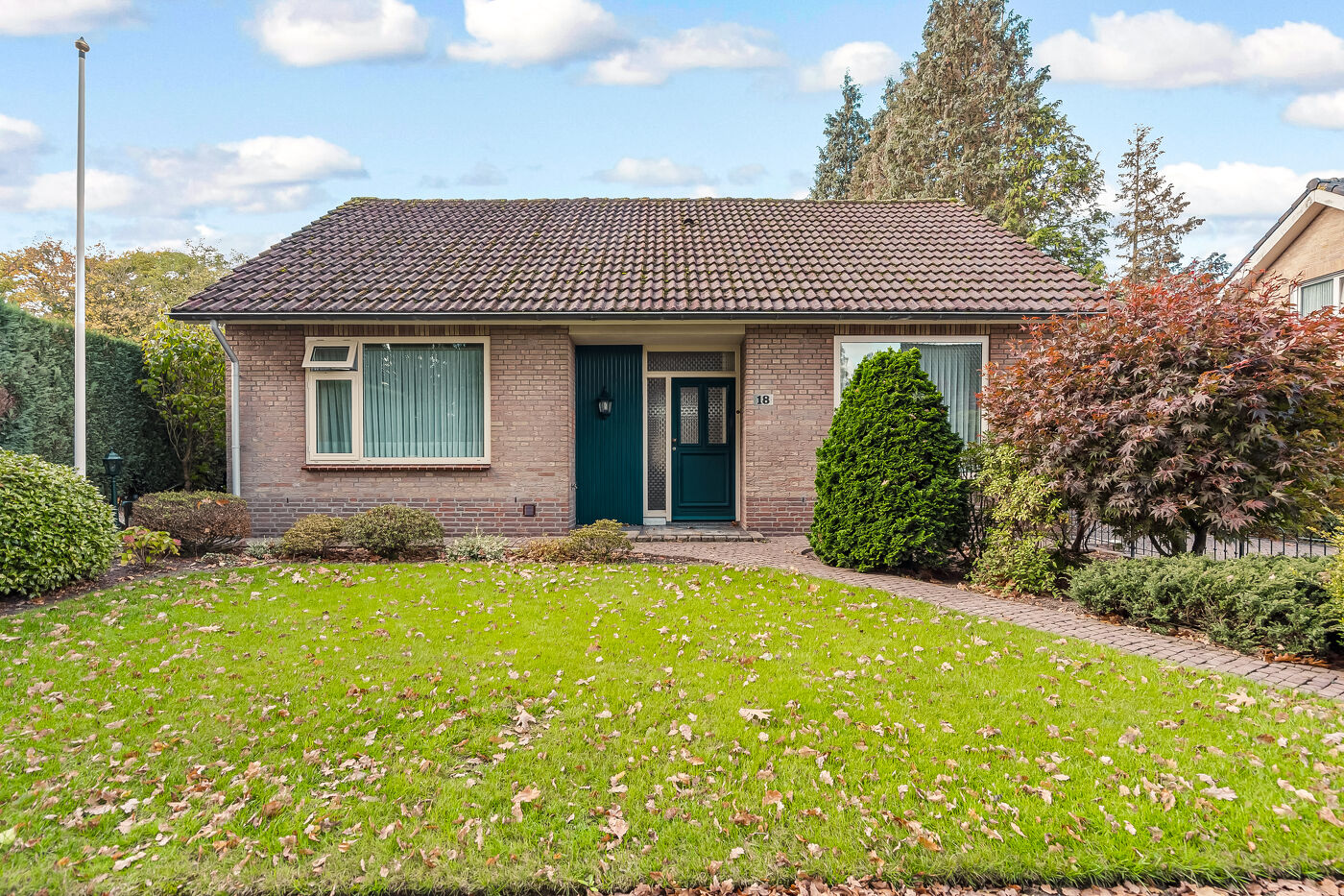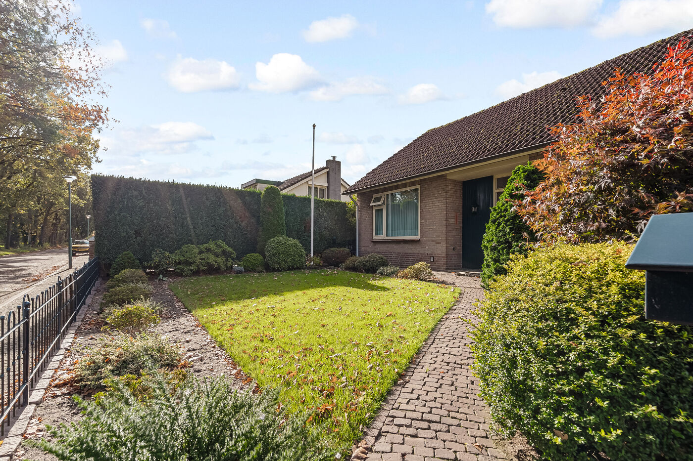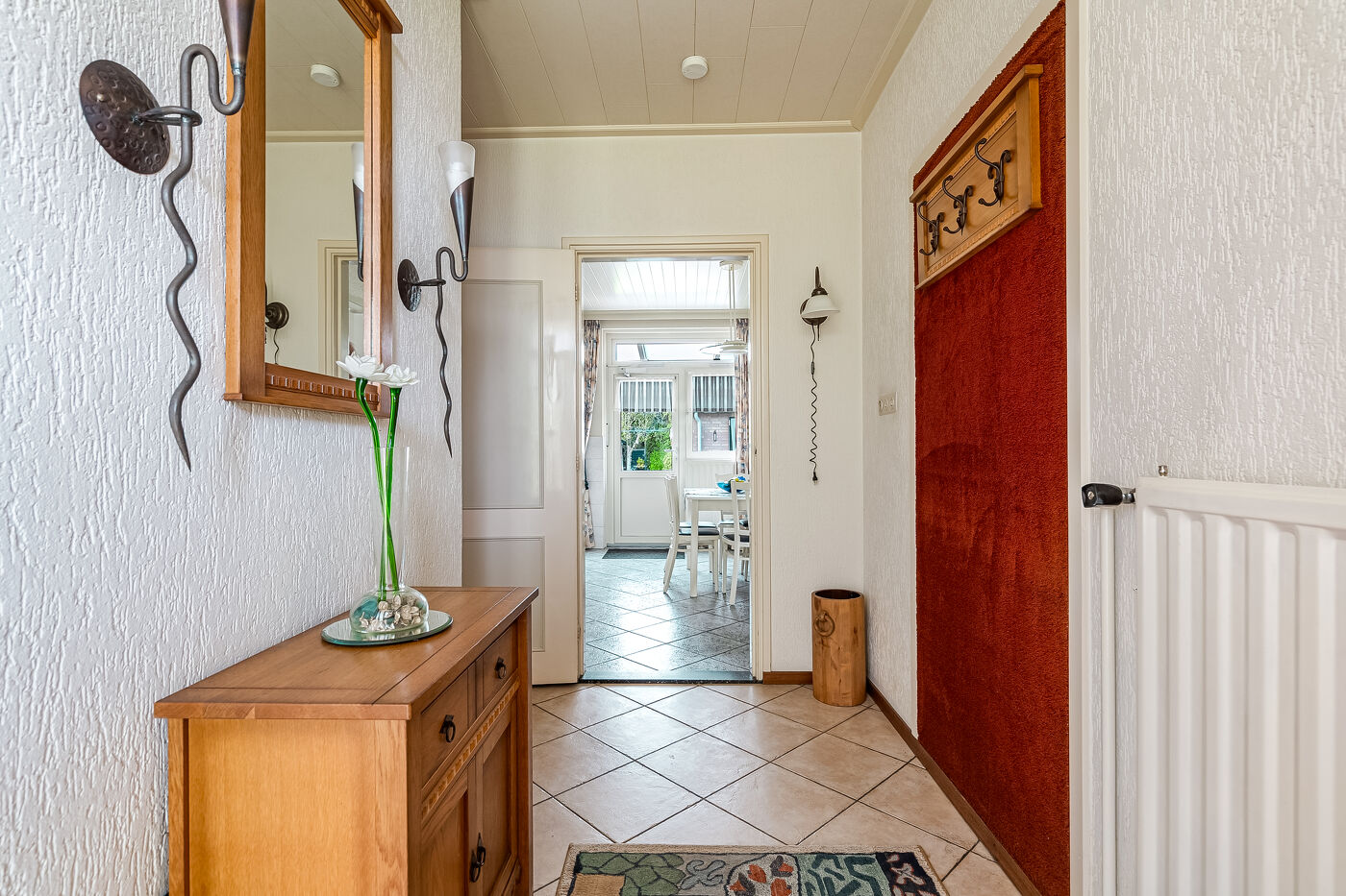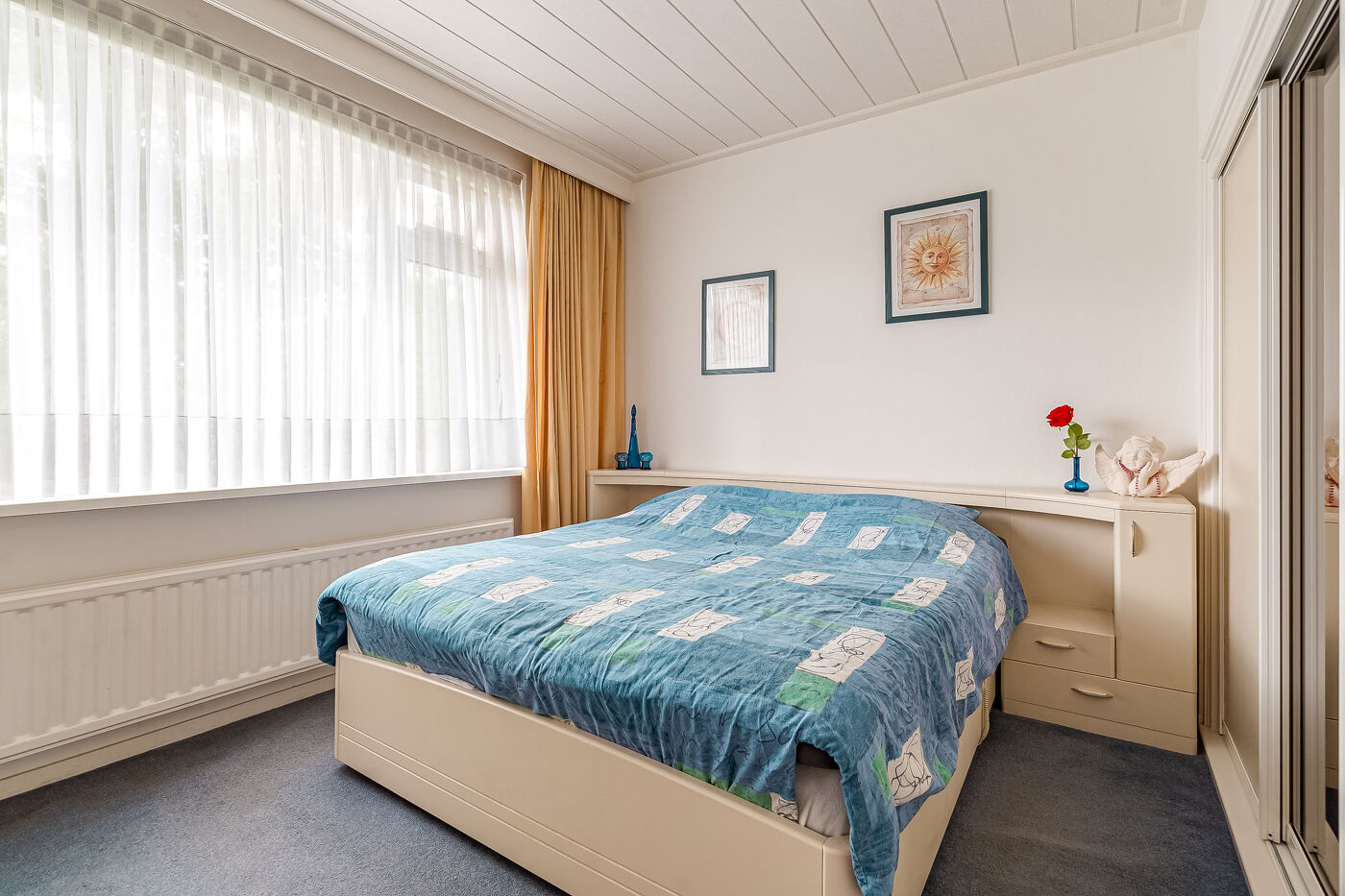 De fraai aangelegde voortuin geeft de woning een warme, uitnodigende uitstraling. Via het looppad naast de oprit bereik je de entree. Vanuit de hal heb je toegang tot de woonkamer, keuken, slaapkamers, badkamer en de trap naar de eerste verdieping. De woonkamer is ruim opgezet en beschikt over grote ramen die zorgen voor een fijne lichtinval en een prettig zicht op de groene voortuin. De sfeer is rustig en tijdloos, met volop mogelijkheden om de ruimte volledig naar eigen smaak te moderniseren. Vanuit de woonkamer heb je directe toegang tot de keuken. Deze bevindt zich centraal in de woning en is praktisch ingedeeld, met voldoende werk- en bergruimte. Aansluitend ligt de deur naar de royale overkapping achter het huis: een heerlijke plek om in elk seizoen te genieten van het uitzicht op de diepe, fraai aangelegde tuin.