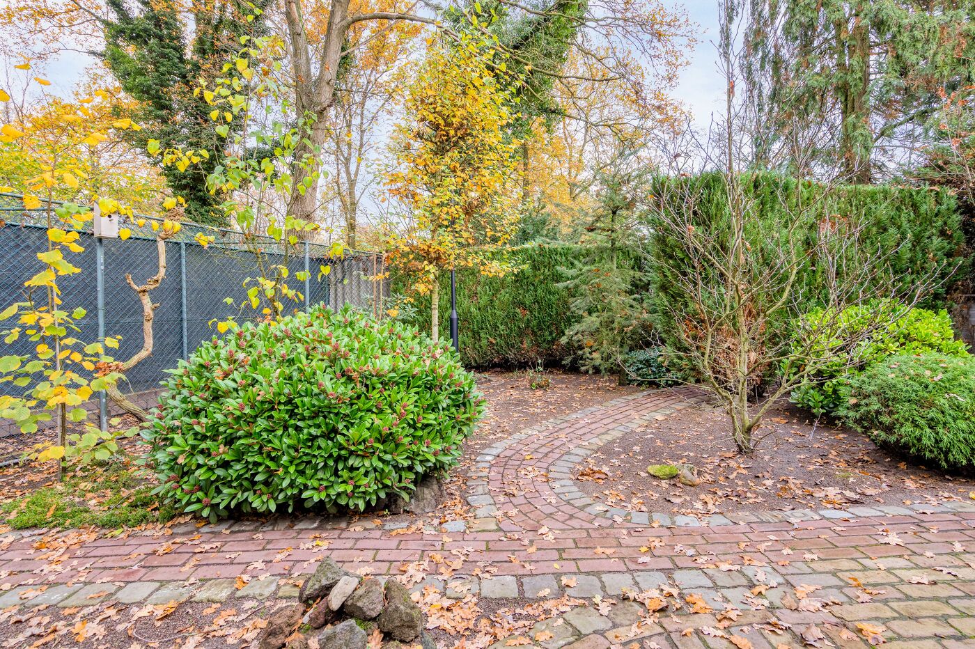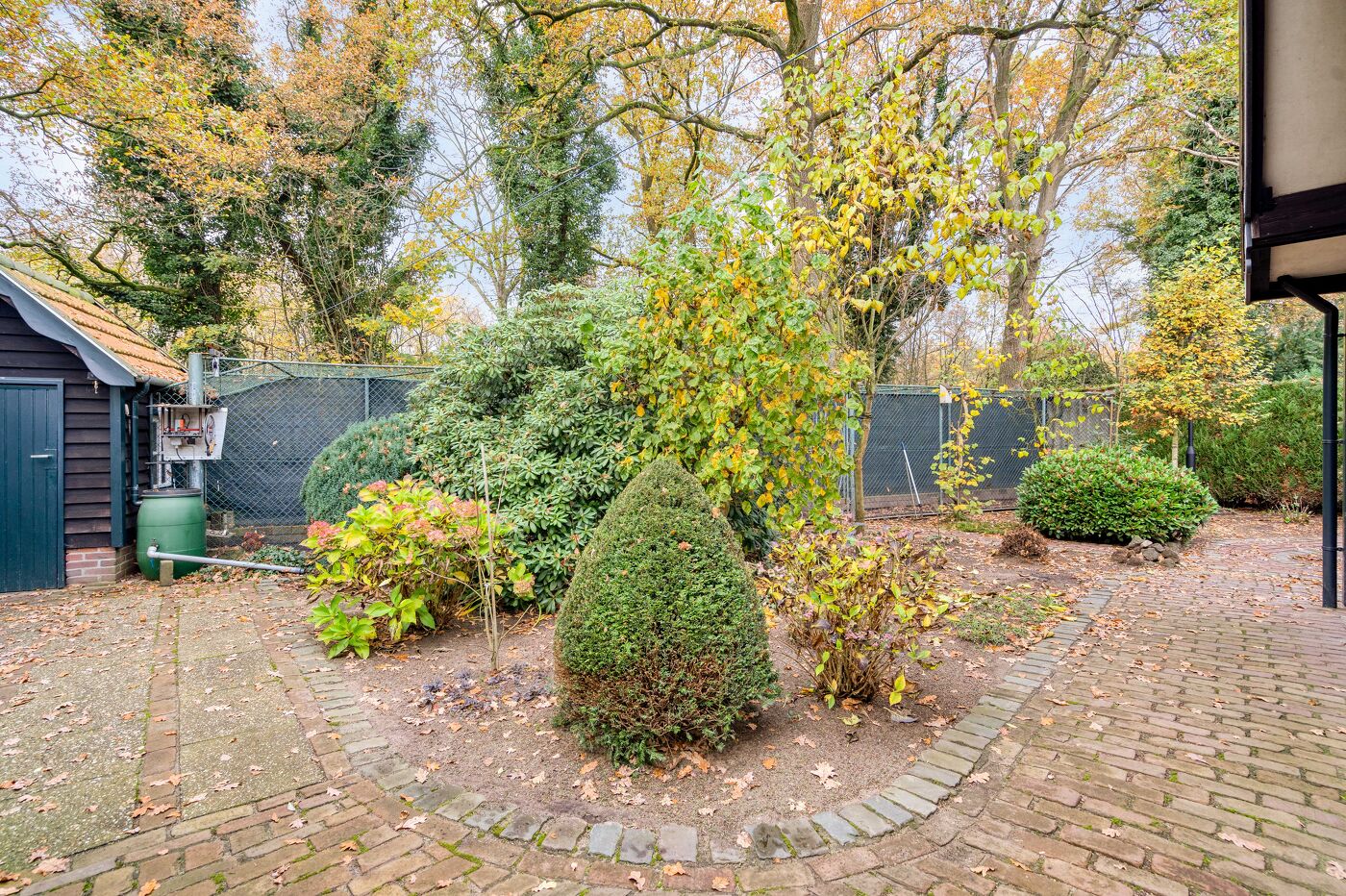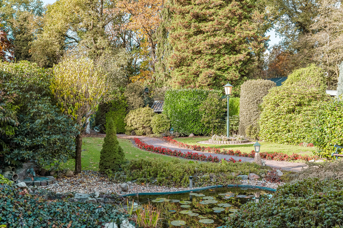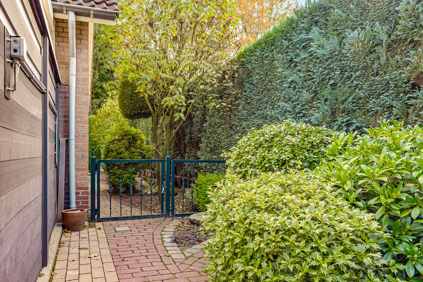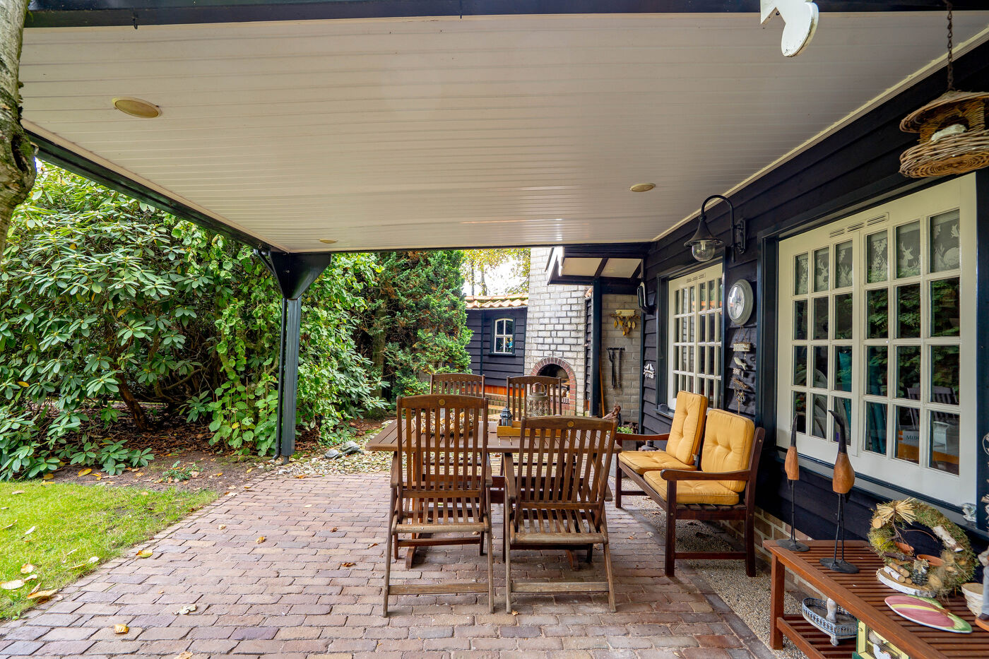 De achtertuin is een waar groen paradijs: diepe borders, volwassen beplanting, ruime gazons en een vrije ligging zorgen voor rust, privacy en een gevoel van ruimte. Helemaal achterin de tuin staat een karakteristiek tuinhuis dat perfect kan dienen als atelier, hobbyruimte of sfeervol buitenverblijf. Het beschikt bovendien over een vliering met extra opbergmogelijkheden, een overkapping en een houtkachel. Aan de achterzijde bevindt zich eveneens een kippenren.