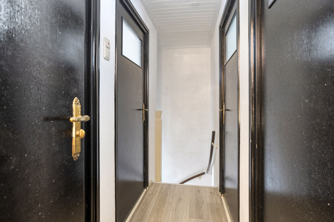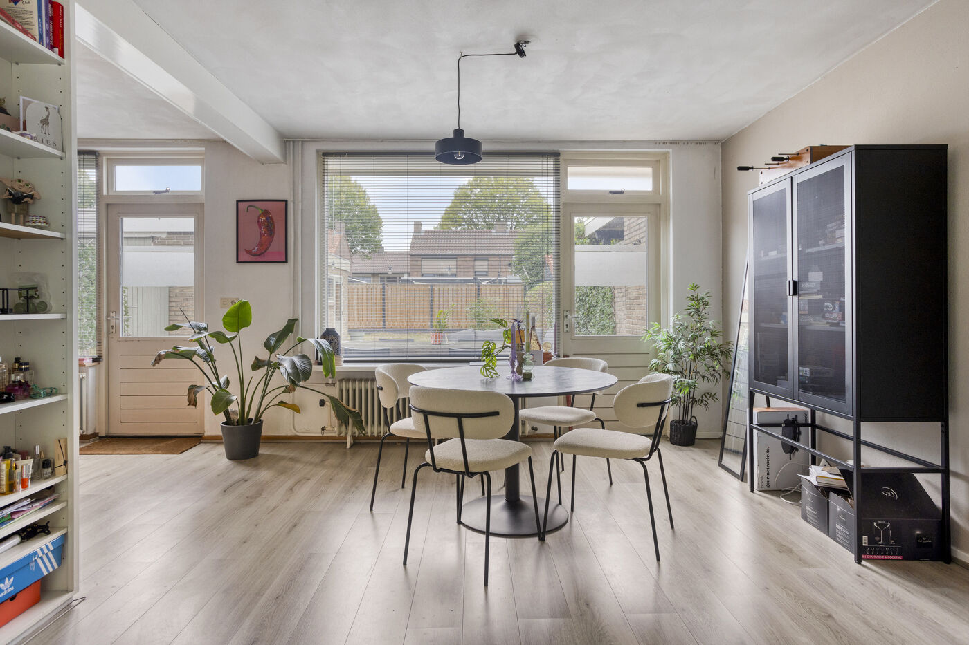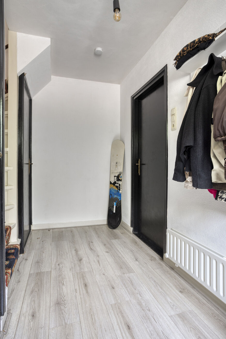 Via de entree bereik je de hal met toilet, trapopgang en toegang tot de woonkamer. De doorzonwoonkamer is heerlijk licht dankzij de grote ramen aan zowel de voor- als achterzijde. Hier geniet je van een prettige leefruimte die eenvoudig in te delen is met een zit- en eethoek. Het eetgedeelte staat in directe verbinding met de keuken, die aan de achterzijde van de woning ligt. Vanuit de keuken heb je toegang tot de tuin.