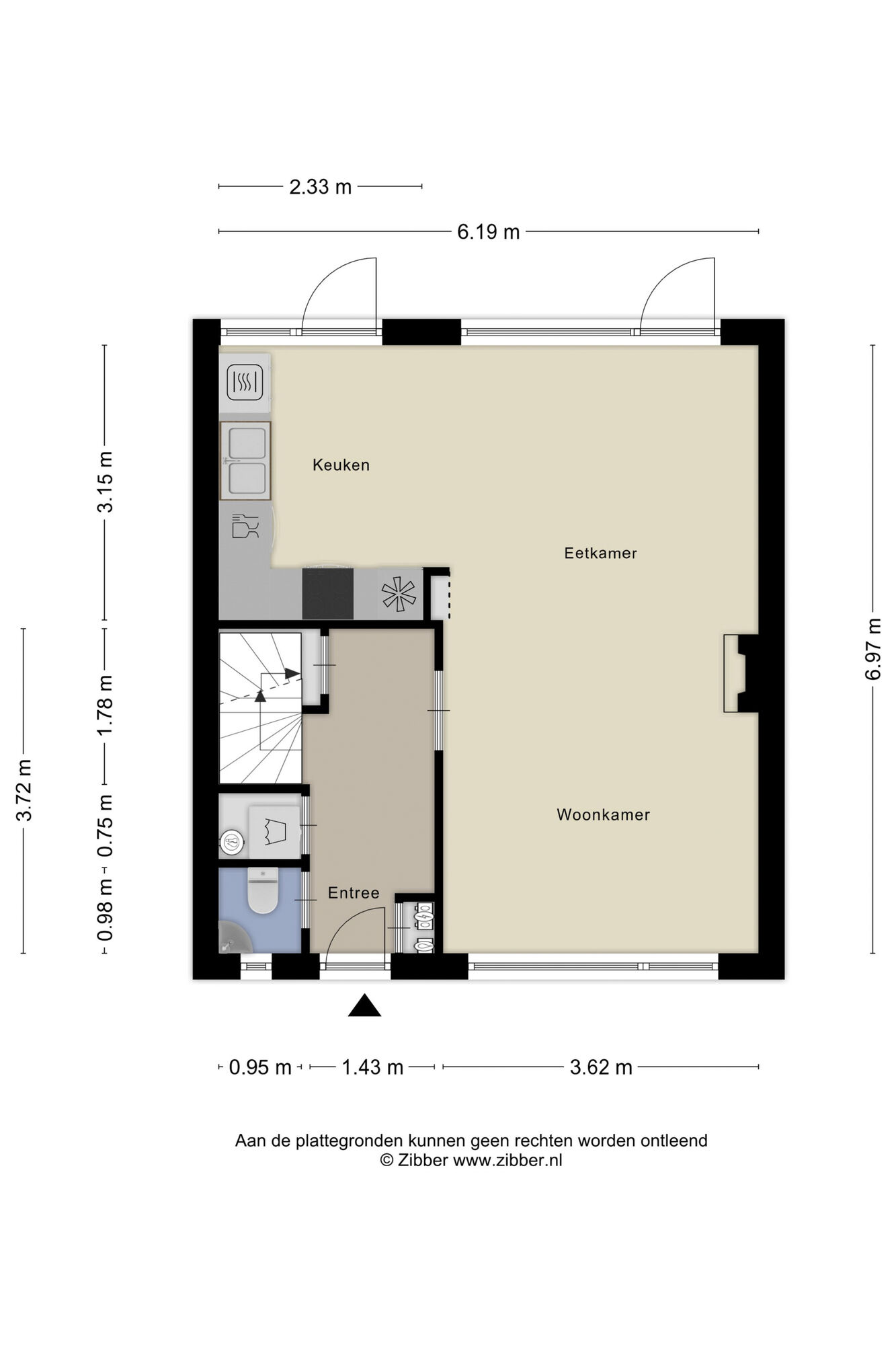 | Begane grond | Entree, hal, meterkast, toilet, kast, woonkamer, keuken |