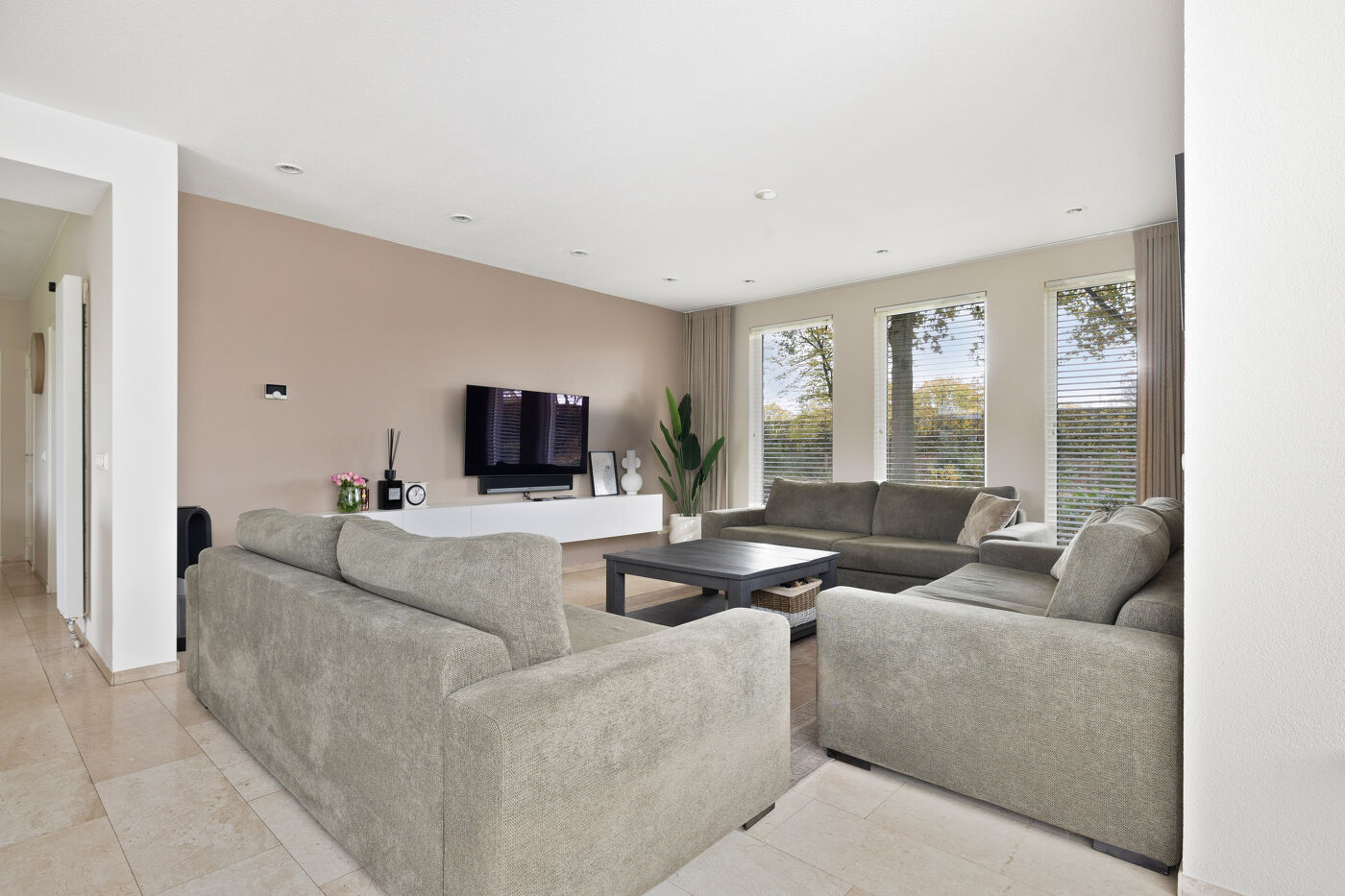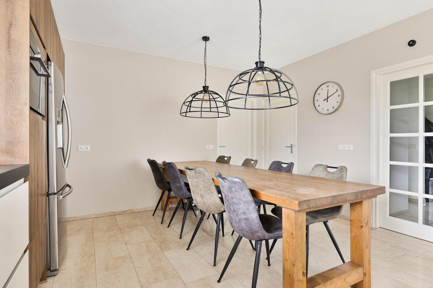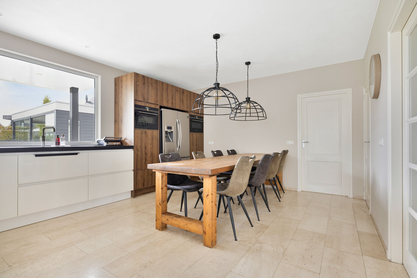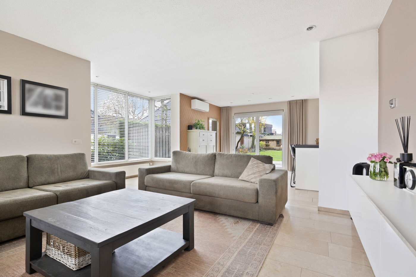 Via de verzorgde voortuin en ruime oprit bereik je de entree van de woning. De hal is ruim en licht, , voorzien van trapopgang en de meterkast. Vanuit hier stap je direct de royale woonkeuken binnen. De moderne keuken vormt het hart van het huis. Deze is uitgevoerd in een luxe opstelling met een royaal werkblad en voorzien van hoogwaardige inbouwapparatuur zoals een inductiekookplaat, combi-oven/magnetron, vaatwasser en Quooker. De keuken staat in open verbinding met de woonkamer, waardoor koken en samenzijn hier naadloos in elkaar overlopen. Dankzij de grote raampartijen, de fraaie erker en de openslaande tuindeuren geniet je hier van veel daglicht en een prachtig zicht op de tuin. De tegelvloer met vloerverwarming en de strakke afwerking zorgen voor een aangename en moderne uitstraling. In de woonkamer is bovendien airconditioning aanwezig, wat het wooncomfort het hele jaar door vergroot.