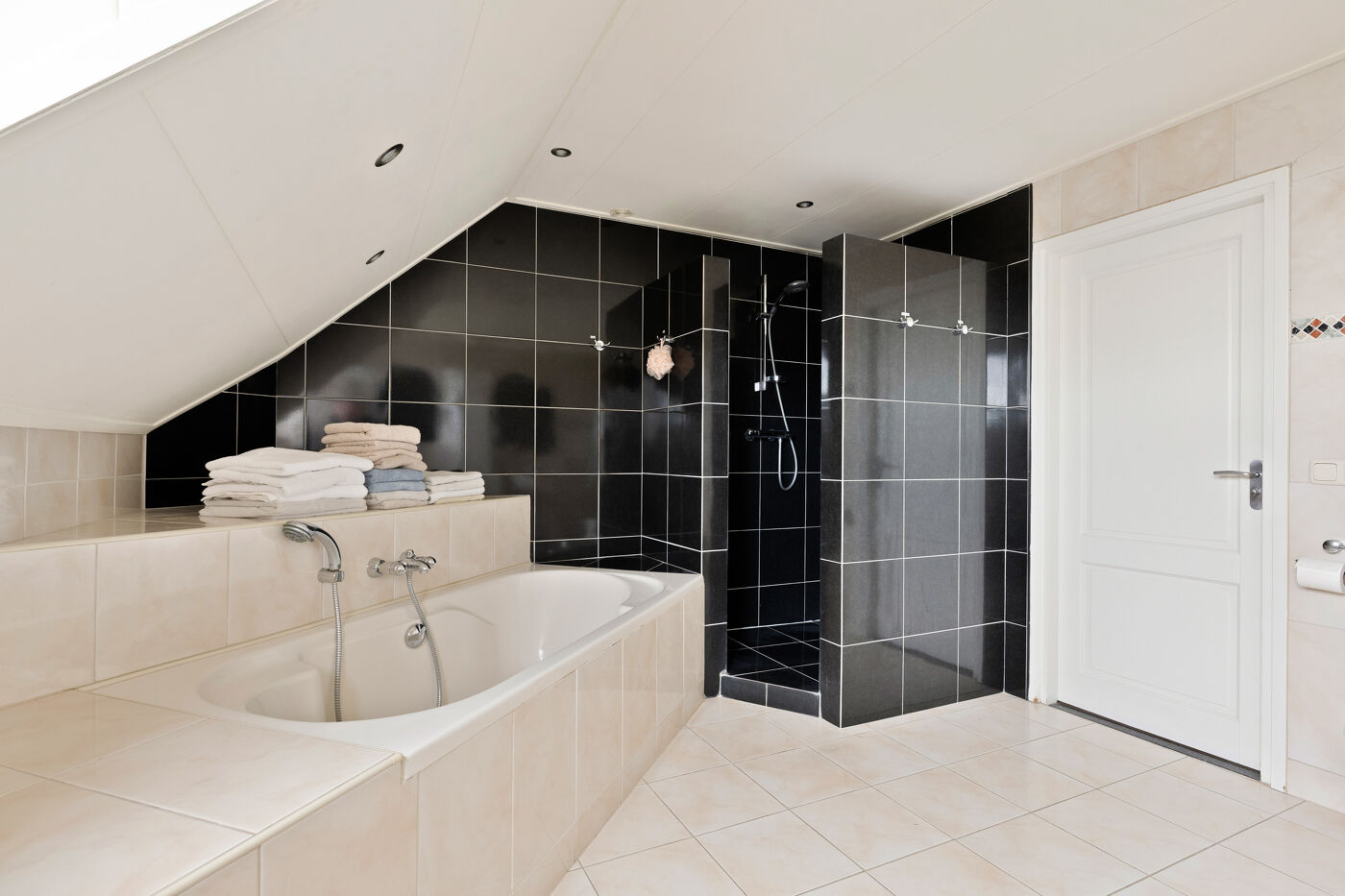 Op de eerste verdieping bevinden zich drie ruime slaapkamers en een royale badkamer. De kamers zijn stuk voor stuk licht en netjes afgewerkt. De masterbedroom beschikt over een inloopkast, een balkon en airconditioning. De badkamer is compleet uitgerust met een ligbad, inloopdouche, dubbele wastafel en een tweede toilet. Op de tweede verdieping bevinden zich nog twee goed bemeten slaapkamers met dakramen en voldoende bergruimte.