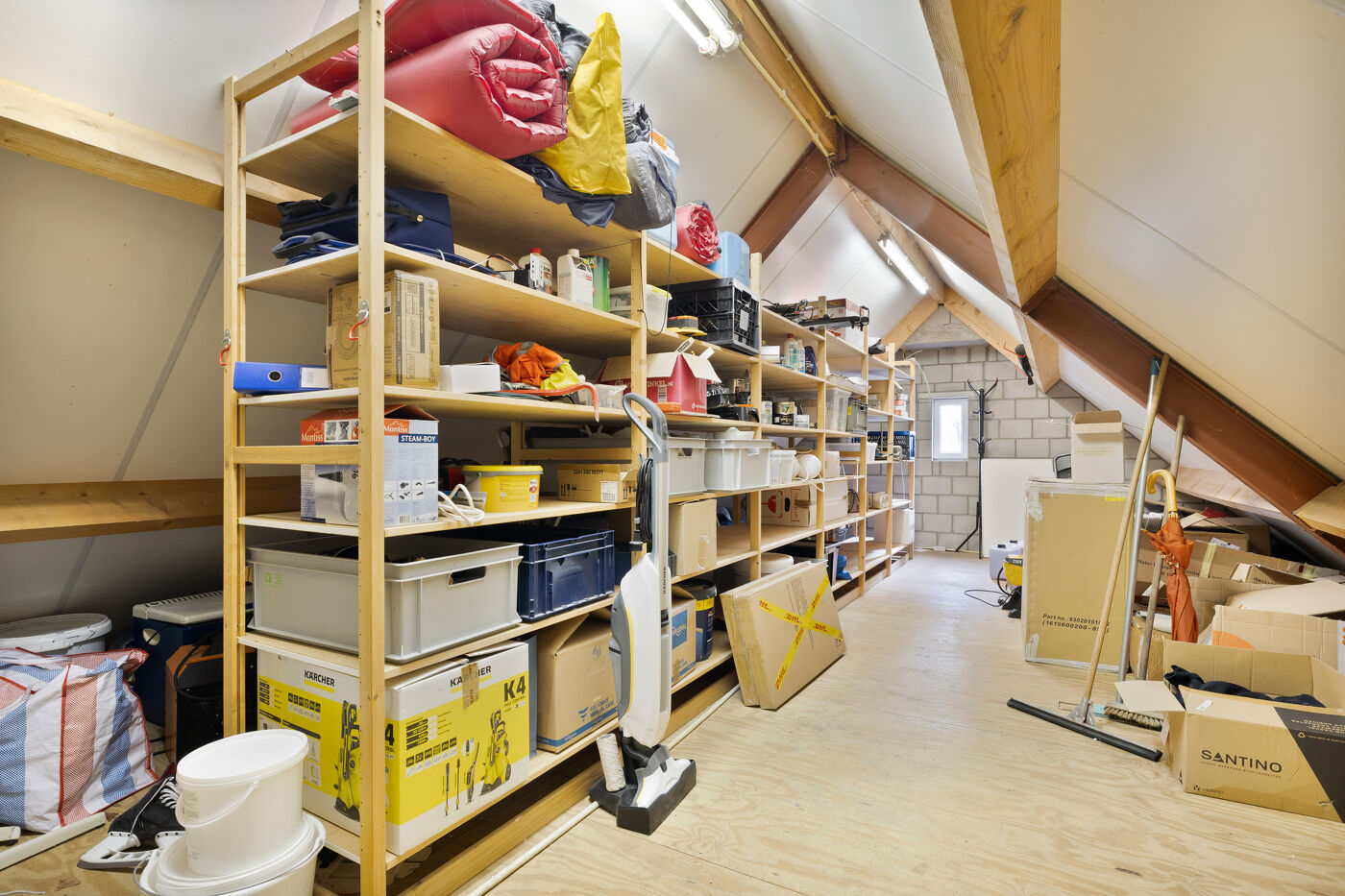 Het multifunctionele bijgebouw maakt deze woning extra bijzonder. Het ruime bijgebouw is volledig in stijl van de woning uitgevoerd en biedt talloze gebruiksmogelijkheden. De huidige eigenaren gebruiken het als praktijkruimte, maar het is ook ideaal als mantelzorgwoning, gastenverblijf, kantoor, atelier of hobbyruimte. Het bijgebouw beschikt over een eigen entree, vloerverwarming, water, elektra en een keukenblok. Boven het bijgebouw bevindt zich een ruime bergzolder die veel extra opslagruimte biedt.