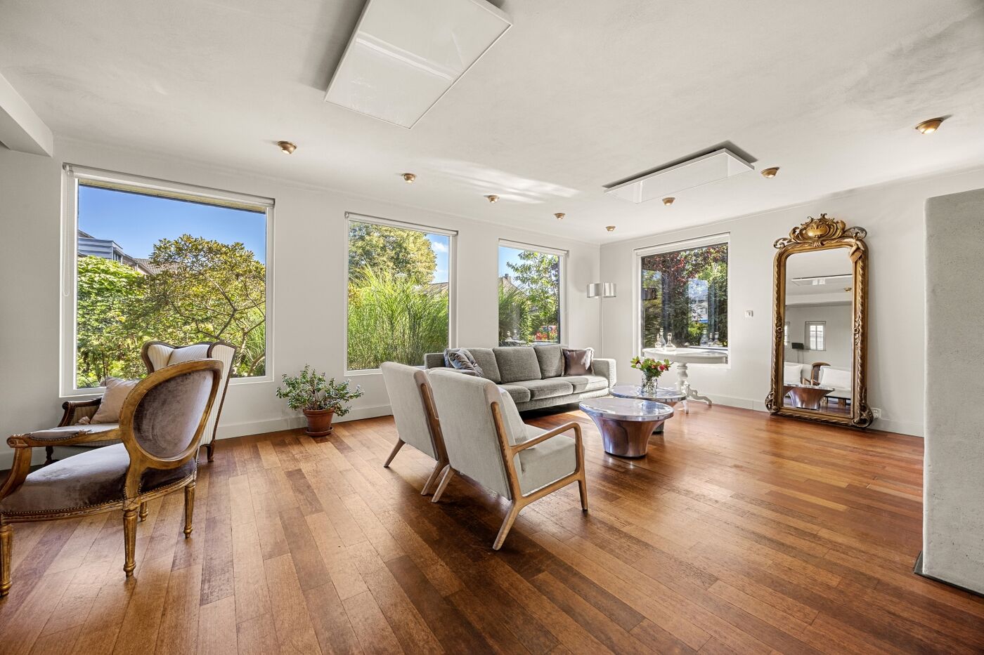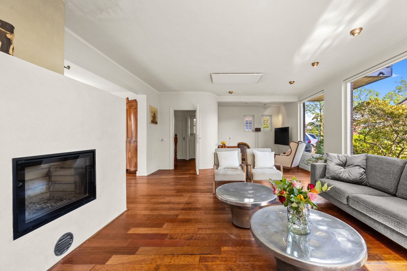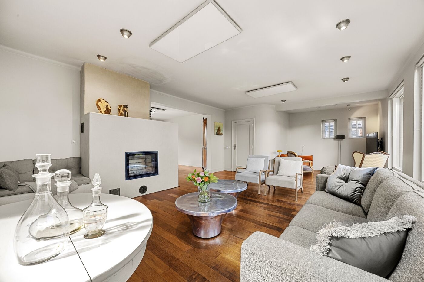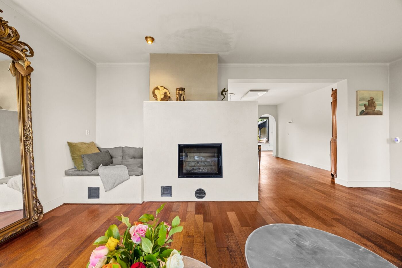 • Lichte woonkamer met grote raampartijen en uitzicht op de tuin