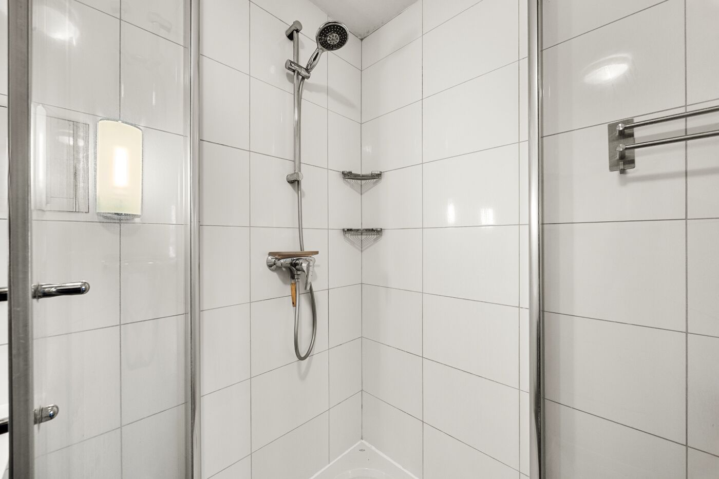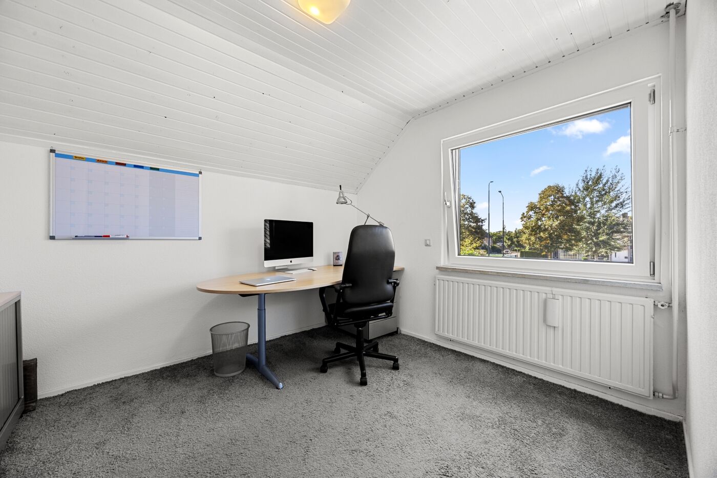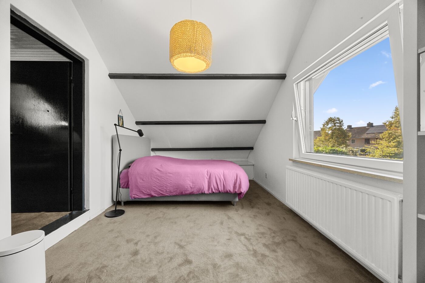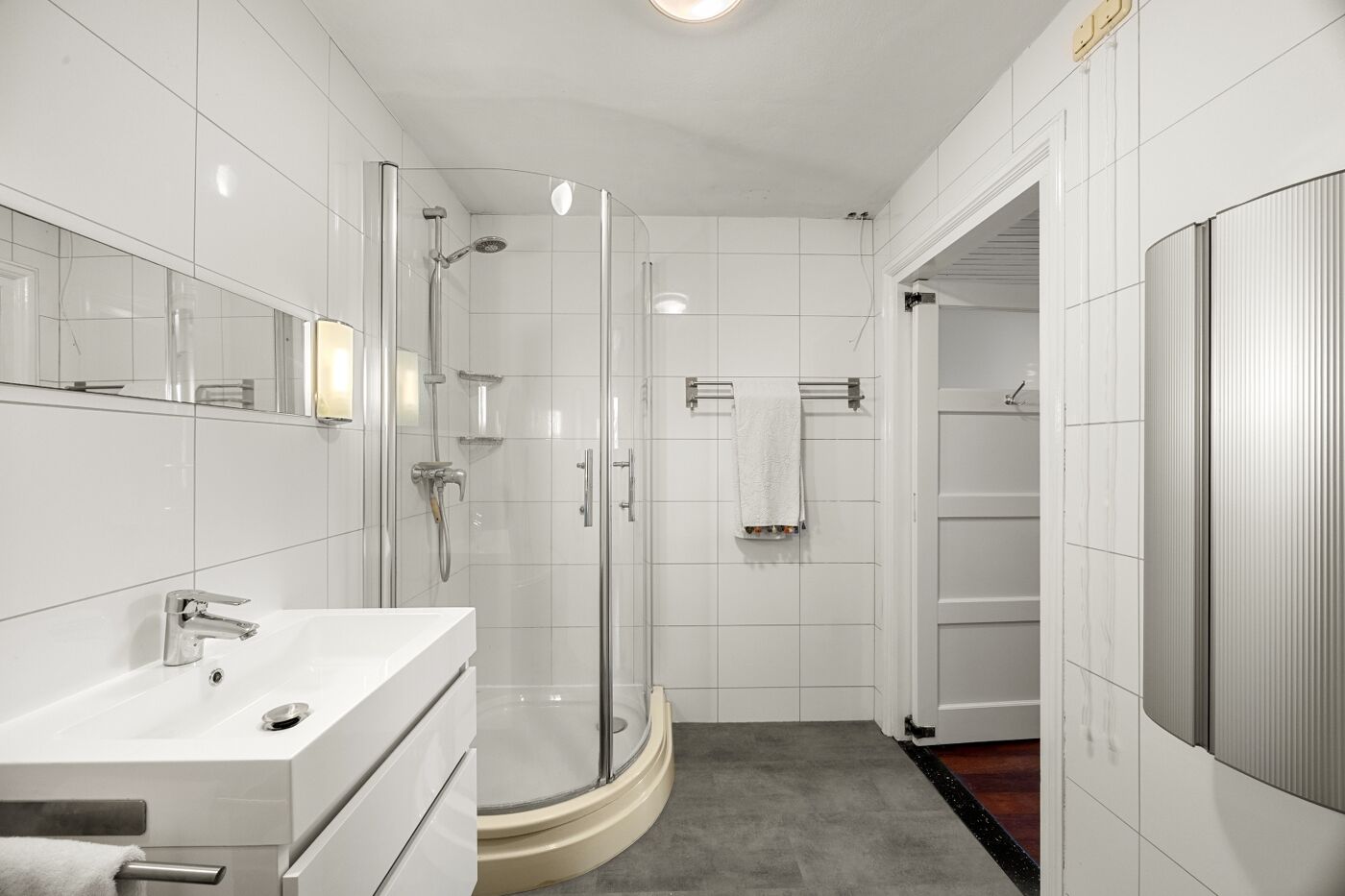 Overloop met houten vloer met aansluitend 4 slaapkamers met tussenruimte, twee badkamers en een vlizotrap naar de tweede verdieping (zolder). De hoofdslaapkamer is uitgerust met een houten vloer, een balkon aan de voorkant en een eigen badkamer. Alle ramen aan de achterzijde zijn ook hier voorzien van elektrische rolluiken.