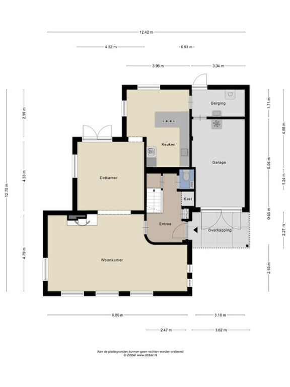 Begane grond Entree, toilet, meterkast, woonkamer, eetkamer, keuken, berging, garage